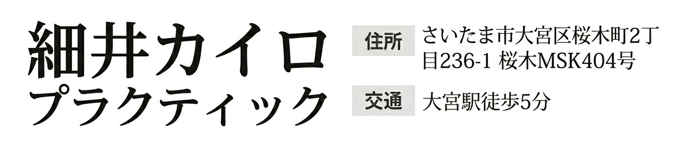 身体のプロとしての証である医療系国家資格を保有し、医師からも推薦される程の高い技術力を持ち、数多くの腰痛のお客様から支持され、あなたの痛みに真正面から向き合う、埼玉で唯一の「腰痛」専門の天神山整体院に来院し、もう二度とその痛みに我慢することのない人生を手に入れる道。